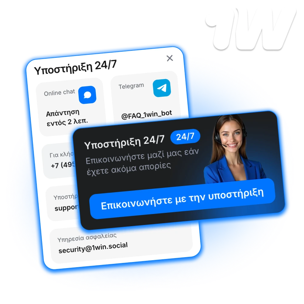 Η ομάδα υποστήριξης της 1w είναι διαθέσιμη 24 ώρες το 24ωρο, 7 ημέρες την εβδομάδα, για να σας βοηθήσει με κάθε ερώτηση, τεχνικό ζήτημα ή αίτημα που μπορεί να έχετε. Μπορείτε να επικοινωνήσετε μέσω ζωντανής συνομιλίας, τηλεφώνου, email ή πλατφορμών ανταλλαγής μηνυμάτων, σε πολλές γλώσσες συμπεριλαμβανομένων των ελληνικών. Οι χρόνοι απόκρισης ποικίλλουν ανάλογα με το κανάλι επικοινωνίας, με τη ζωντανή συνομιλία να προσφέρει άμεση βοήθεια και το email να απαντάται εντός 24 ωρών.